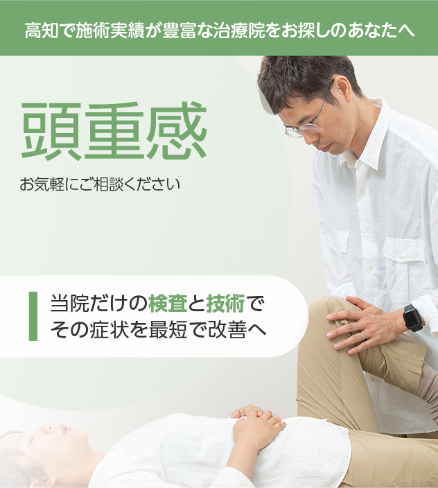 病院やほかの治療院で改善しなかったとしても諦める必要はありません。頭重感は豊富な施術実績を誇る当院にお任せください。